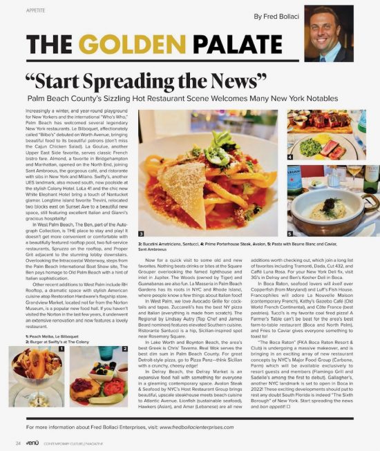 The Restaurant Diet by Fred Bollaci (© 2017 Mango Publishing) is the definitive guide to dining out guilt free, whether dining for business, pleasure, travel, or mere convenience, Fred’s book showcases 125 healthy gourmet recipes from the nation’s Top 100 restaurants and 25 of his favorites. His proven four-phase plan is a lasting recipe for successful healthy gourmet living!