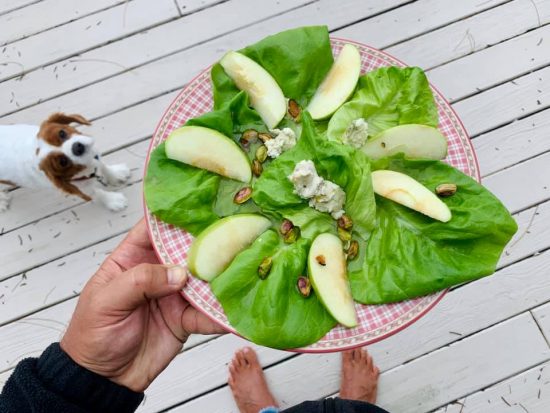 Granny Smith Salad with Boston Lettuce, Oregon Blue Cheese, lightly salted Pistachios, drizzle evoo and cider vinegar, topped with drizzle of White Truffle Honey! ❤️😀🍏