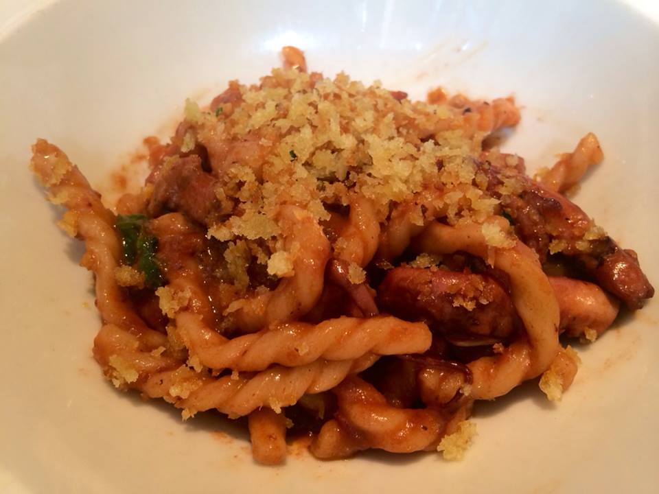10418212_10203034420076415_5920977996004340583_n-1One of the most amazing pasta dishes I’ve ever eaten: house-made fusilli with red-wine and cork-braised octopus with bone marrow, like the perfect Bolognese sauce meets Italian seaside sensation in heaven.