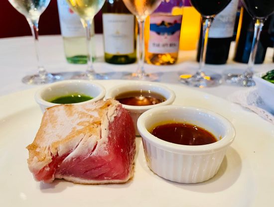 The Generous Pour wine event is going on through September 4th at Capital Grille locations nationwide. $32 for tastes of six Antinori wines, two standouts from USA (WA State Col Solare and Napa Cab, Antica), Villa Antinori Tuscan Red (Italy), Tormaresca Rose’ and Chardonnay from Puglia, Italia, and Pinot Grigio from Veneto (NE Italy) available with dinner (they accommodate for lunch also—must ask). 2 Oz samples of six wines and then you can revisit any/all and with tasting notes. Had with the Seared Tuna (without Sesame Seeds or Rice) but with Trio of Sauces and Creamed Spinach. The Salmon with Salad of Greens, Mango, Tomato, and Vinaigrette is another nice light option. Fun to go with friends and blind taste, compare notes, and rate your favorite!